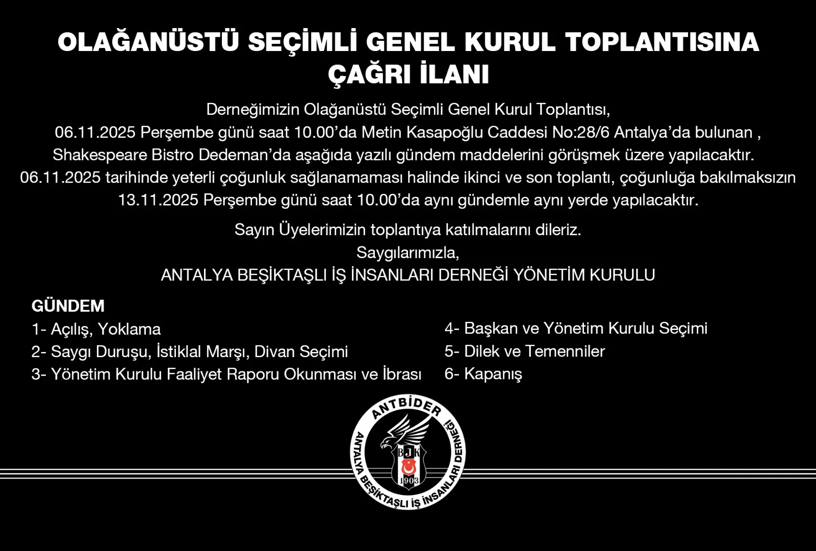 Antalya Beşiktaşlı İş İnsanları Derneğimizin bugün gerçekleştirdiği Olağan&uu...